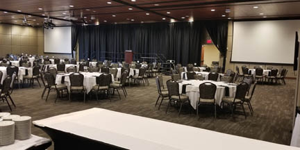 South Omaha Campus, Center for Advance Manufacturing (CAM) Conference room 120 can accommodate seating in rounds for 250 or theatre seating for 400. Event reservations include basic AV equipment and support, as well as set-up, and tear-down.